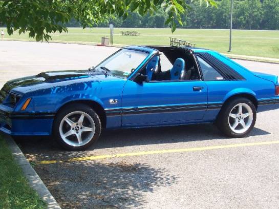 Comments: THIS IS MY 82 GT MUSTANG. IT BEEN COMPLETELY REPAINTED BONZAI BLUE FROM THE ORIGINAL DEEP RED COLOR. ENGINE IS THE ORIGINAL BLOCK THATS BEEN BORED .030 OVER, WORLD HEADS, AIR GAP INTAKE, 650 DBL. PUMP HOLLEY CARB., K&N AIR FILTER, 3:73 GEARS, FORD HEAVY DUTY RACING 5 SPEED, STEEDA SHIFTER, COBRA WHEELS, SHORTIE MAC HEADERS & X PIPE, FLOWMASTER MUFFLERS, JUST TOO NAME A FEW THINGS.